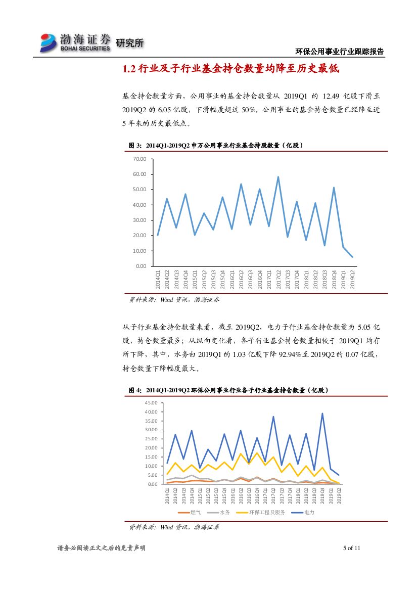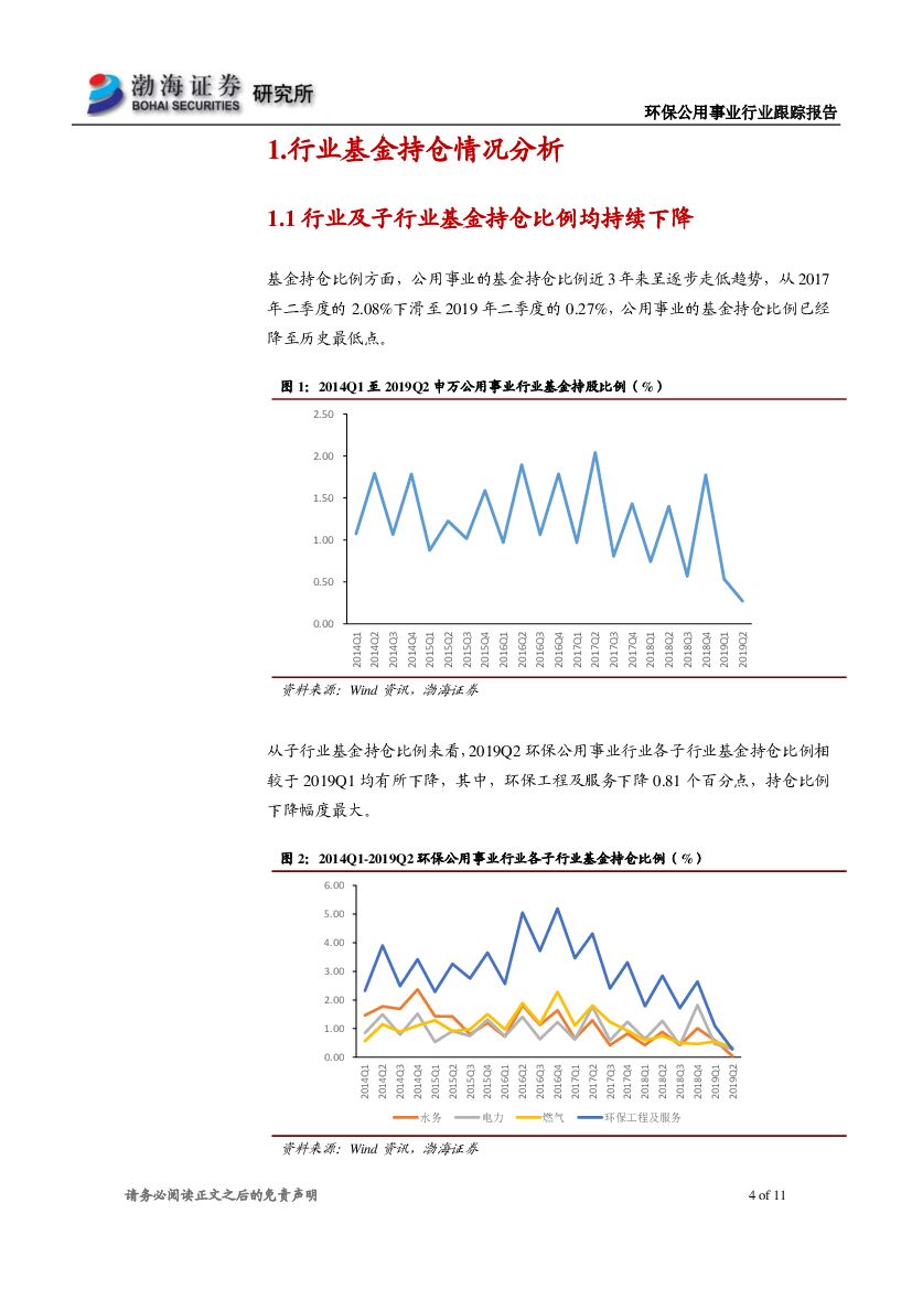 渤海证券:环保公用事业行业2019年二季度基金持仓分析:基金持仓比例持续下滑,持仓集中度有所提升.pdf