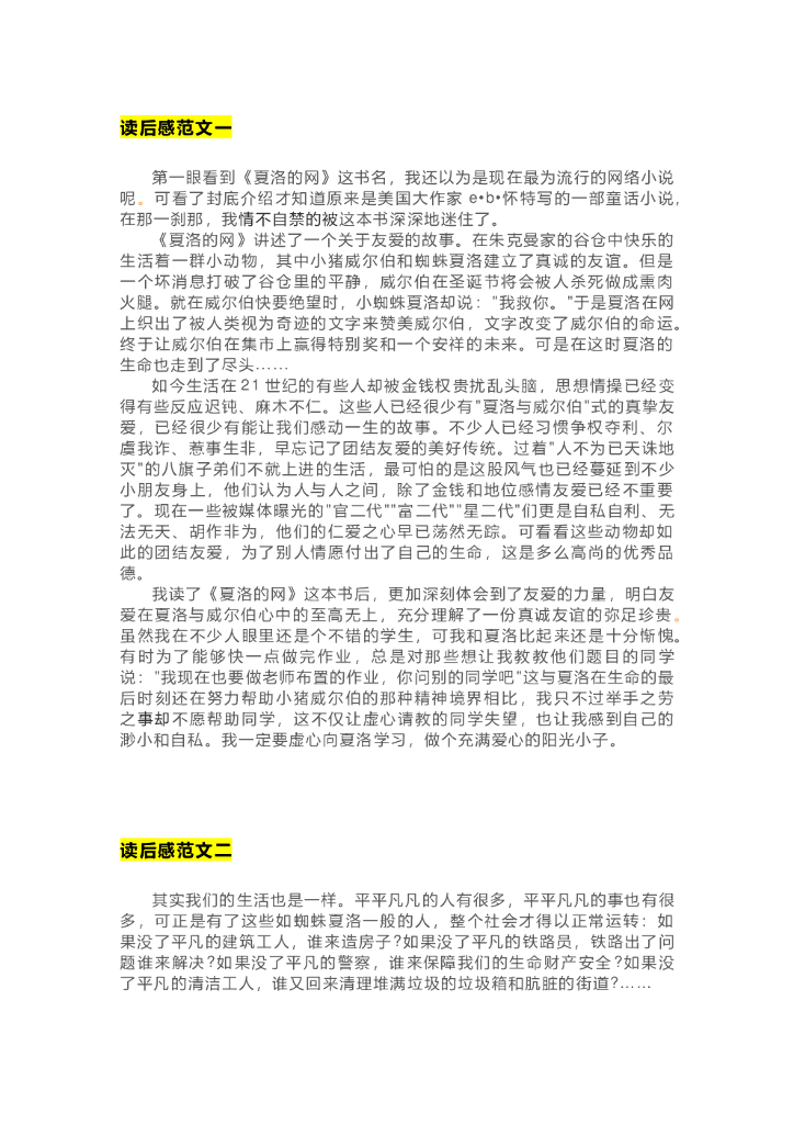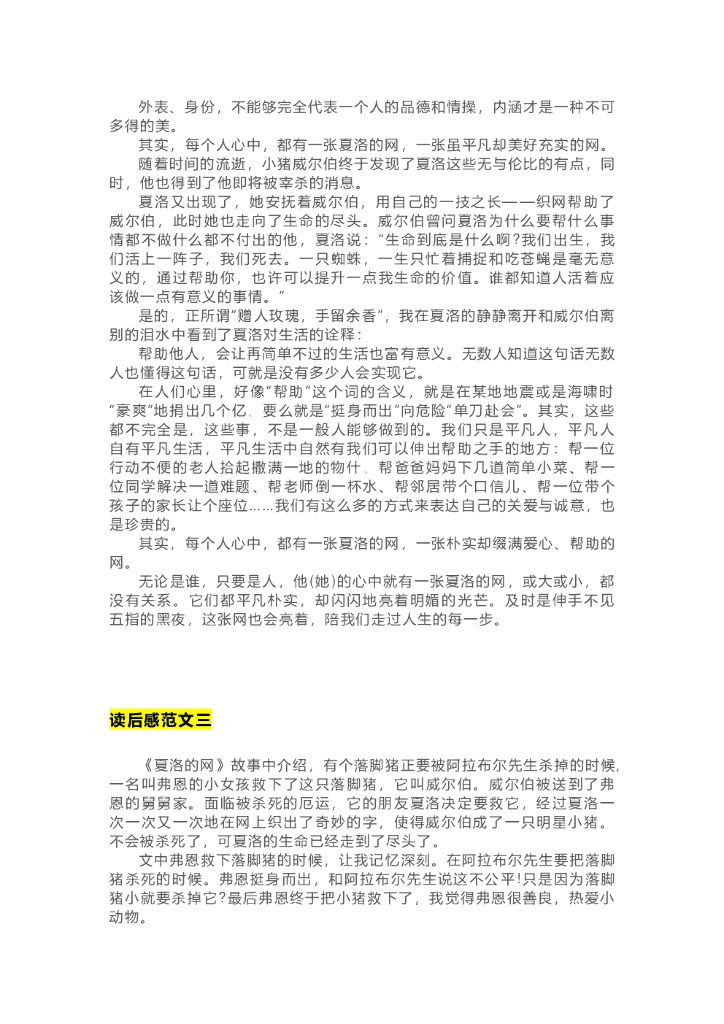 27《夏洛的网》精彩片段+读后感.doc