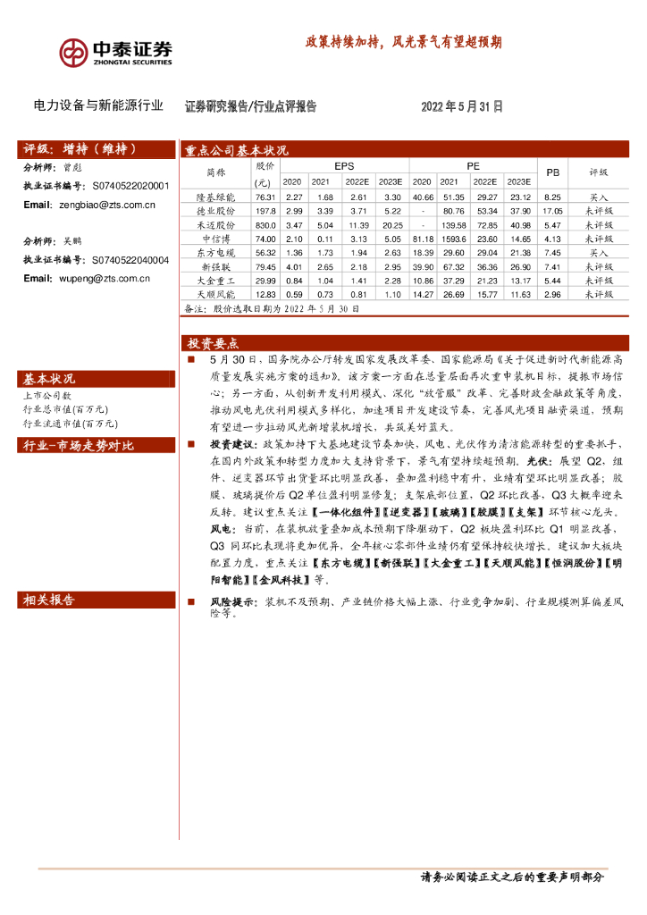 中泰证券:电力设备与新能源行业点评报告:政策持续加持,风光景气有望超预期.pdf