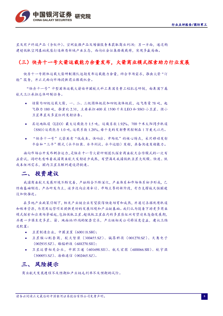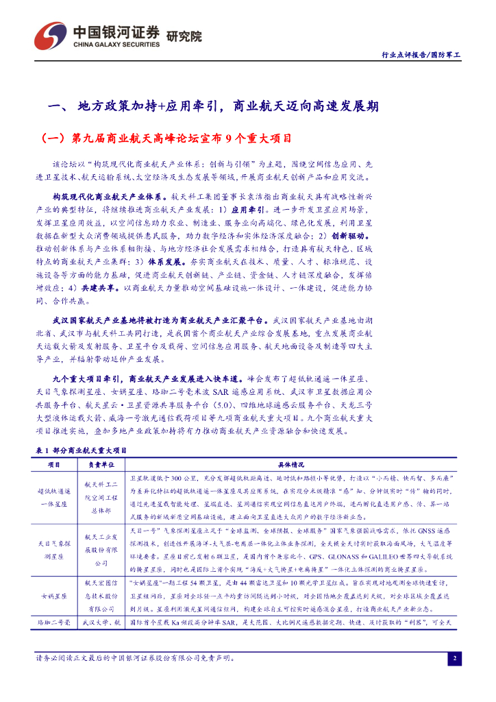 中国银河:军工行业点评:地方政策加持+应用牵引,商业航天迈向高速发展期.pdf