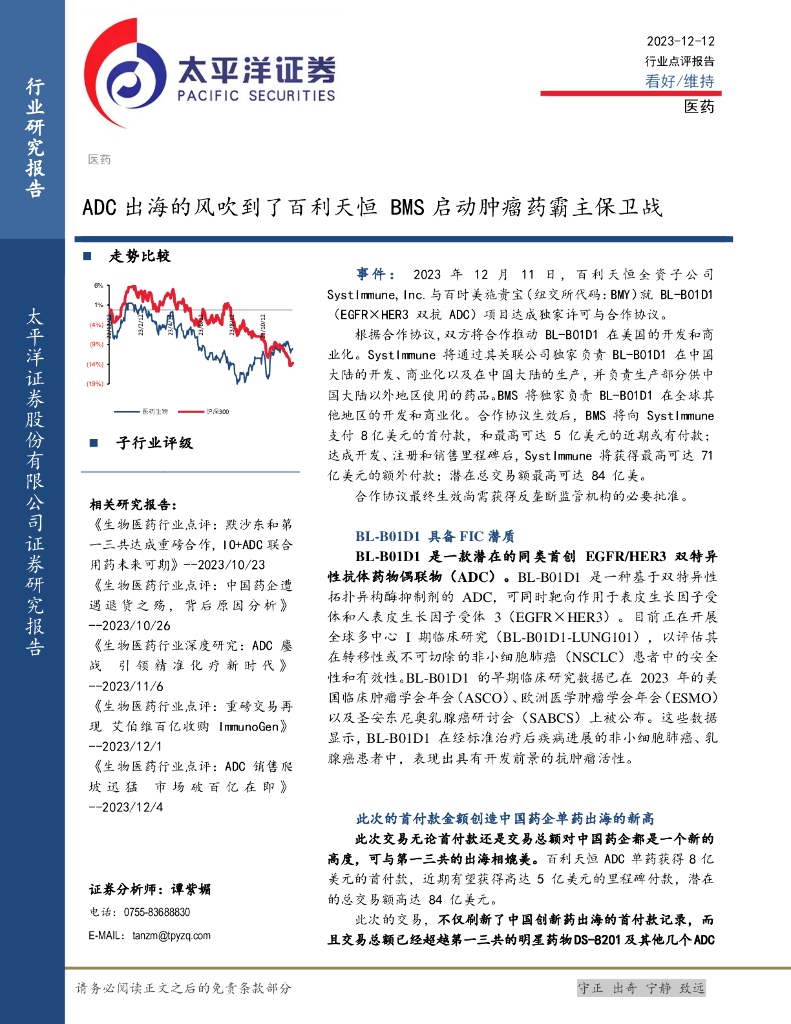 太平洋证券:医药行业点评报告:ADC出海的风吹到了百利天恒 BMS启动肿瘤药霸主保卫战.pdf