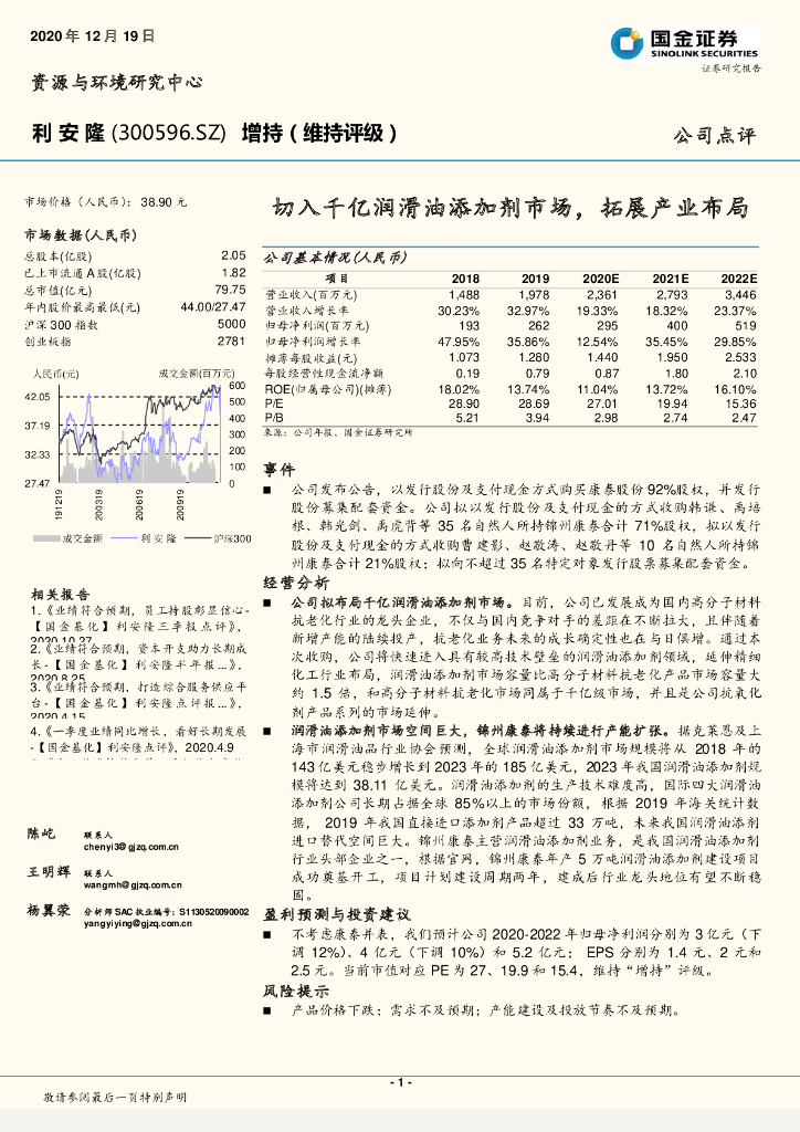 国金证券:利安隆(300596)-切入千亿润滑油添加剂市场,拓展产业布局.pdf