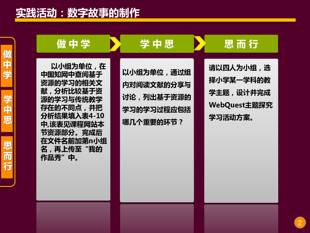 《现代教育技术应用》演示文稿-实践活动:基于资源的学习及活动设计(第二讲).pdf