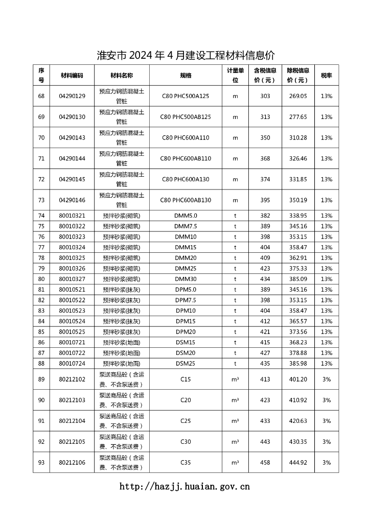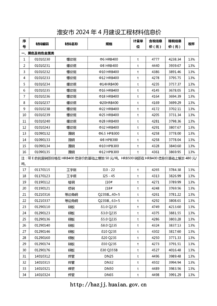 淮安市 2024 年 4 月建设工程材料信息价.pdf