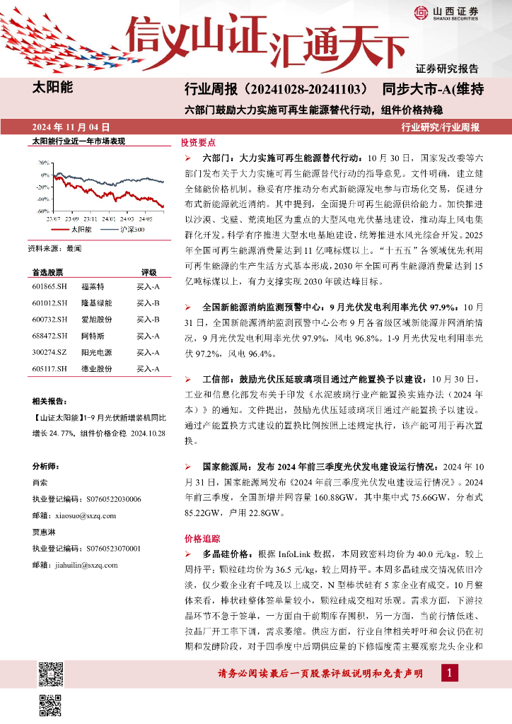 山西证券:太阳能行业周报:六部门鼓励大力实施可再生能源替代行动,组件价格持稳.pdf