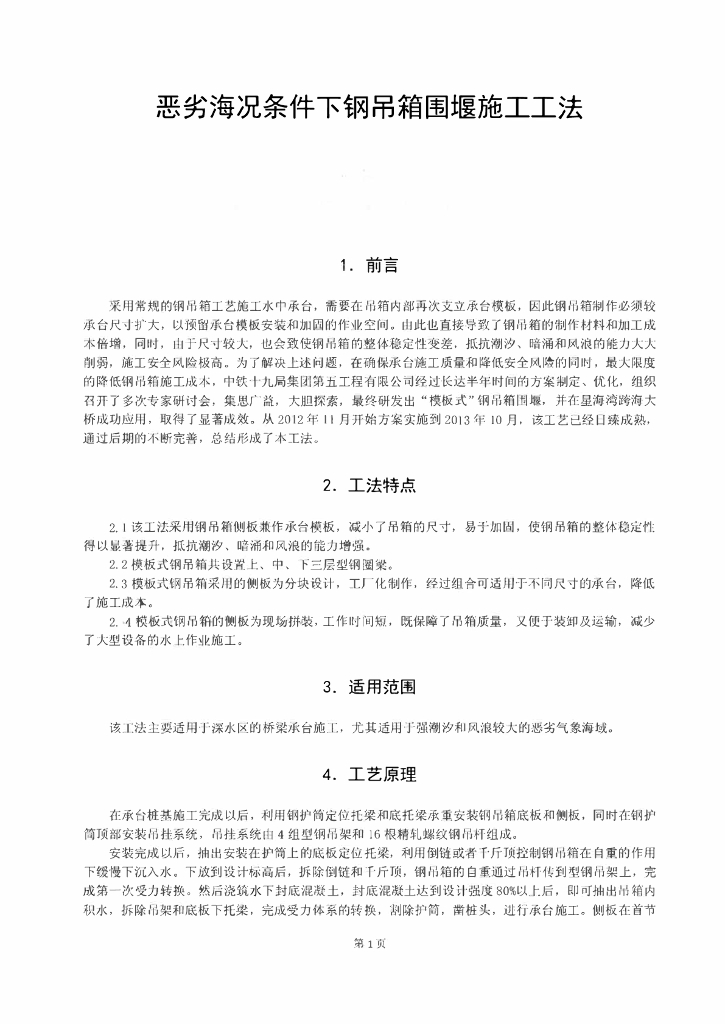 恶劣海况条件下桥梁钢吊箱围堰施工工法.pdf