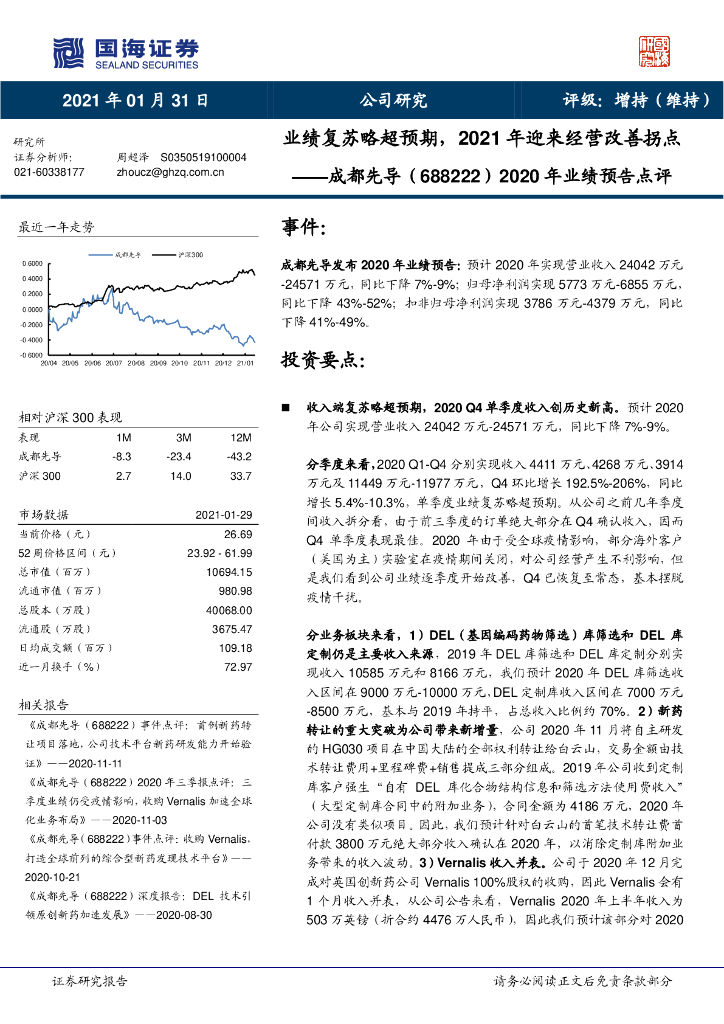 国海证券:成都先导(688222)-2020年业绩预告点评:业绩复苏略超预期,2021年迎来经营改善拐点.pdf
