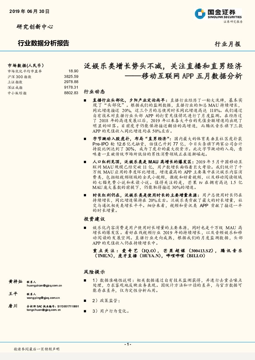国金证券:移动互联网APP五月数据分析:泛娱乐类增长势头不减,关注直播和直男经济.pdf