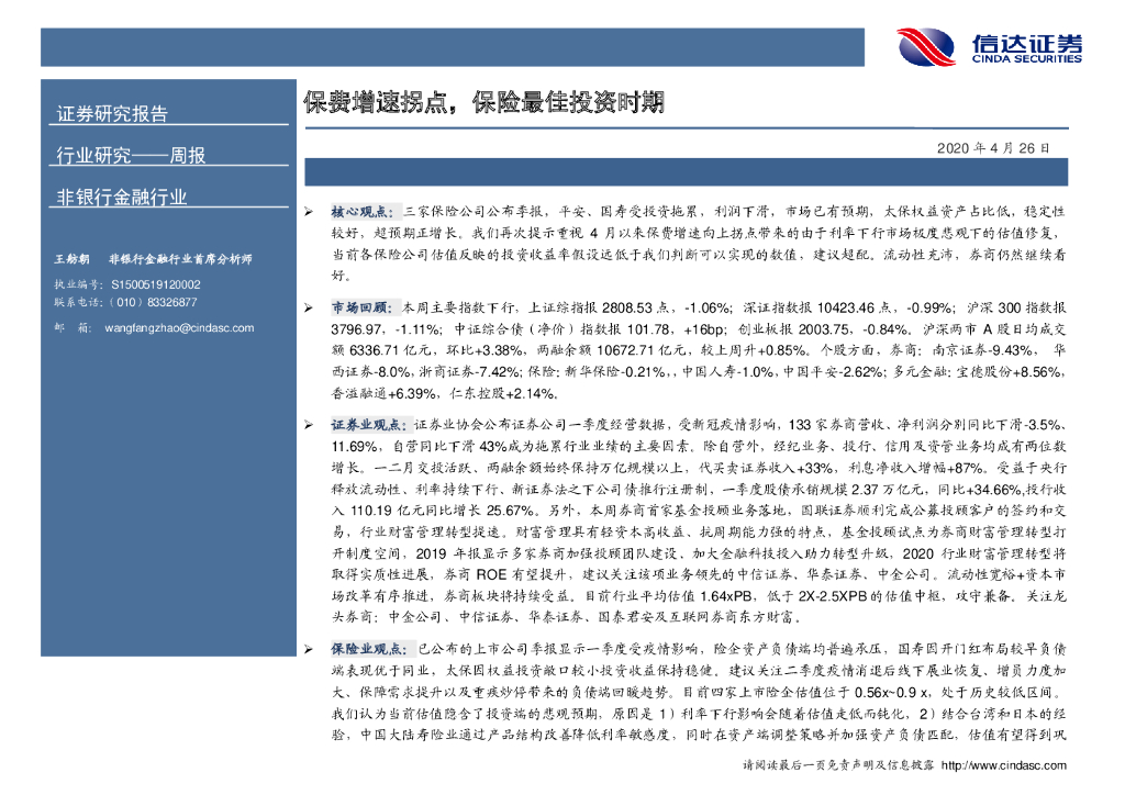 信达证券:非银行金融行业周报:保费增速拐点,保险最佳投资时期.pdf