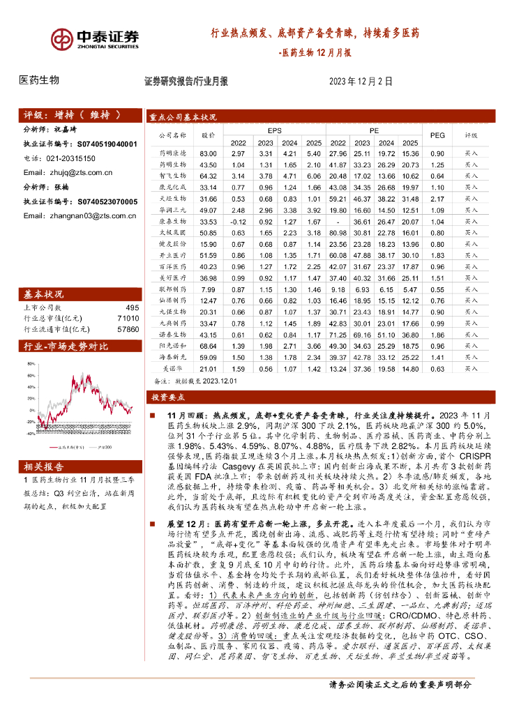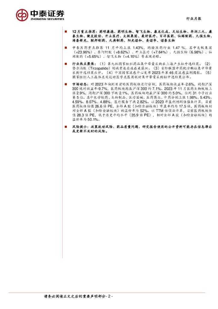 中泰证券:医药生物12月月报:行业热点频发、底部资产备受青睐,持续看多医药.pdf