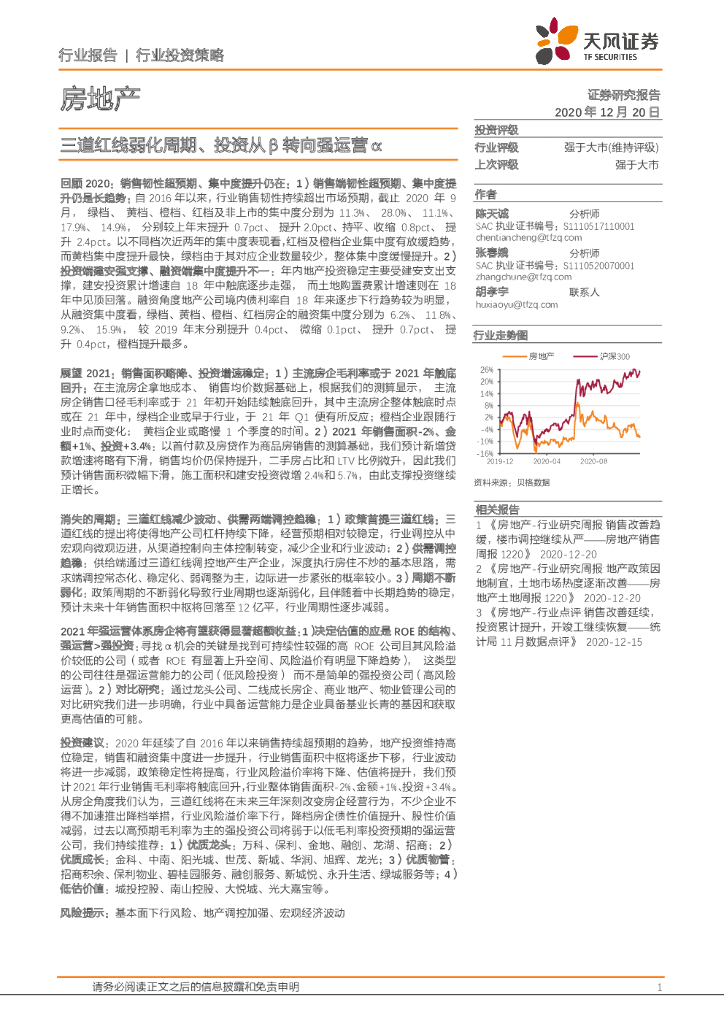 天风证券:房地产行业投资策略:三道红线弱化周期、投资从β转向强运营α.pdf