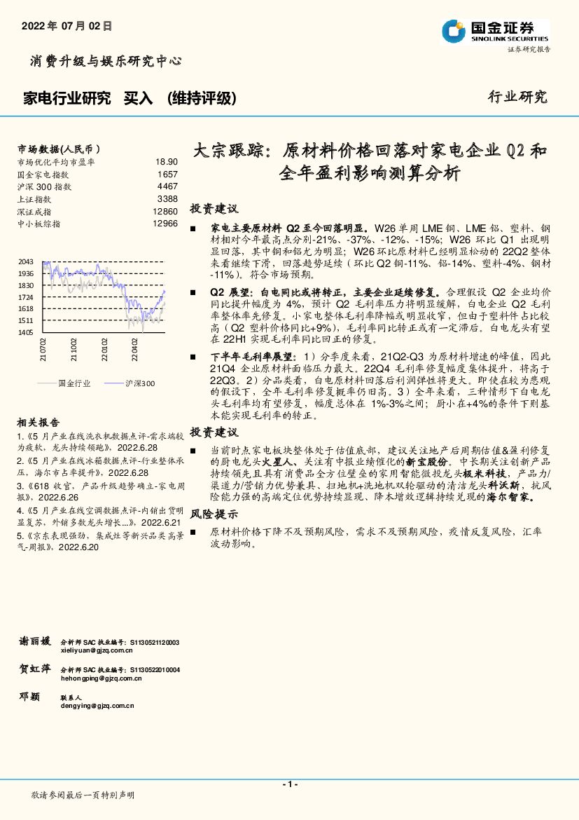 国金证券:家电行业研究:大宗跟踪:原材料价格回落对家电企业Q2和全年盈利影响测算分析.pdf