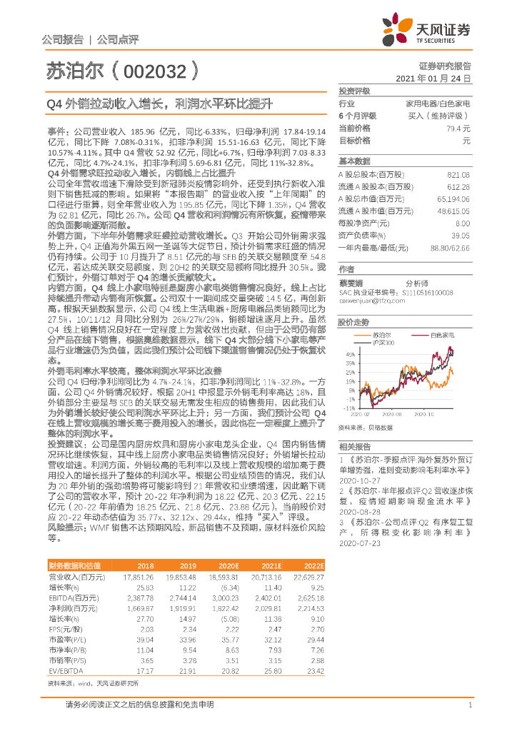 天风证券:苏泊尔(002032)-Q4外销拉动收入增长,利润水平环比提升.pdf