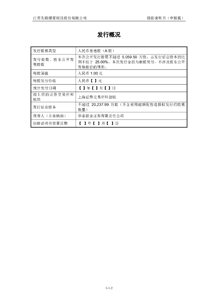 江苏先锋精密科技股份有限公司上交所科创板IPO上市招股说明书.pdf