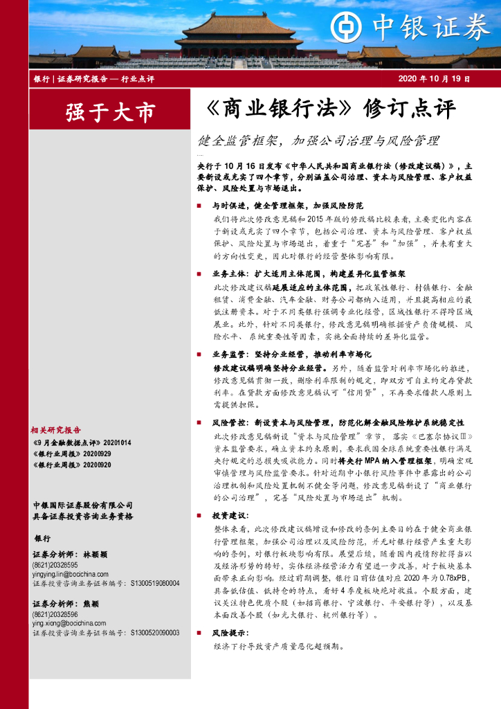 中银证券:《商业银行法》修订点评:健全监管框架,加强公司治理与风险管理.pdf