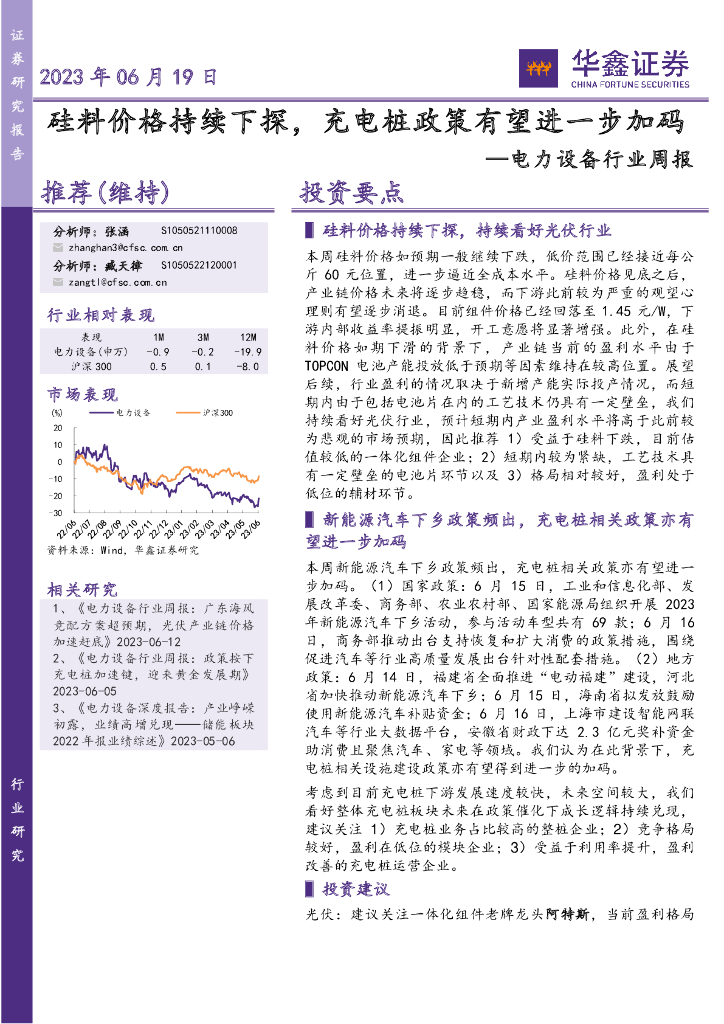华鑫证券:电力设备行业周报:硅料价格持续下探,充电桩政策有望进一步加码.pdf
