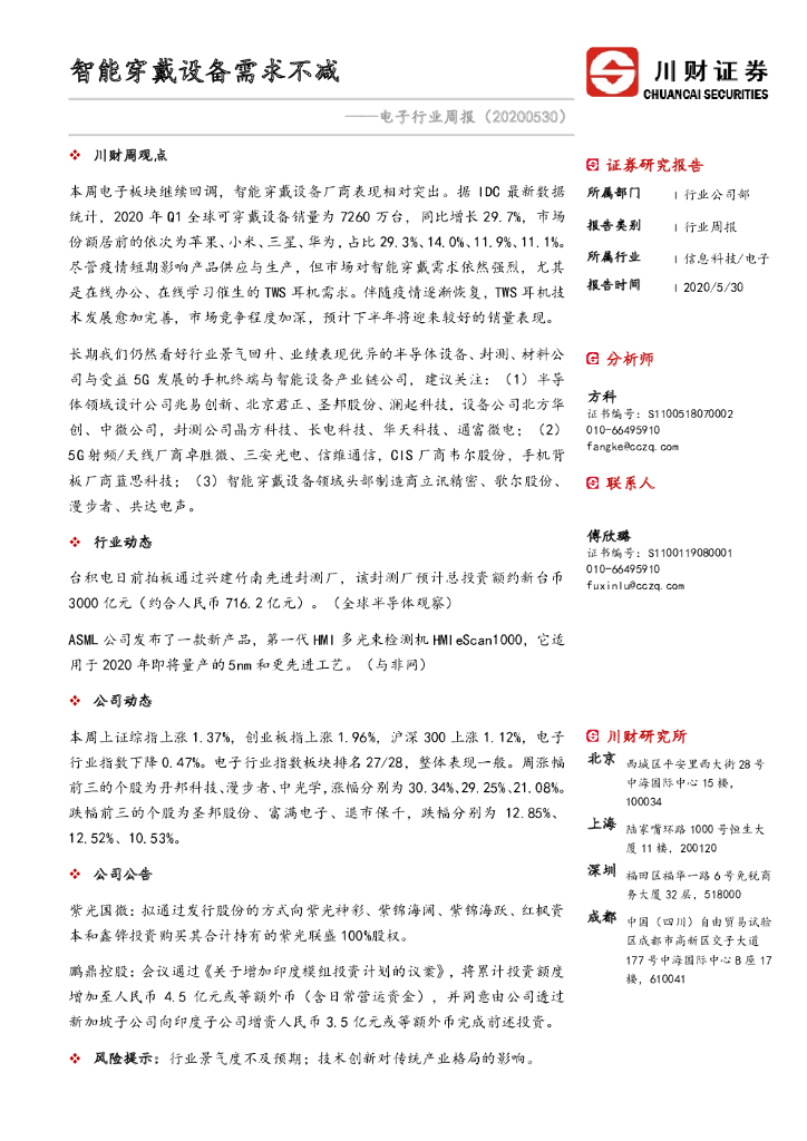川财证券:电子行业周报:智能穿戴设备需求不减.pdf