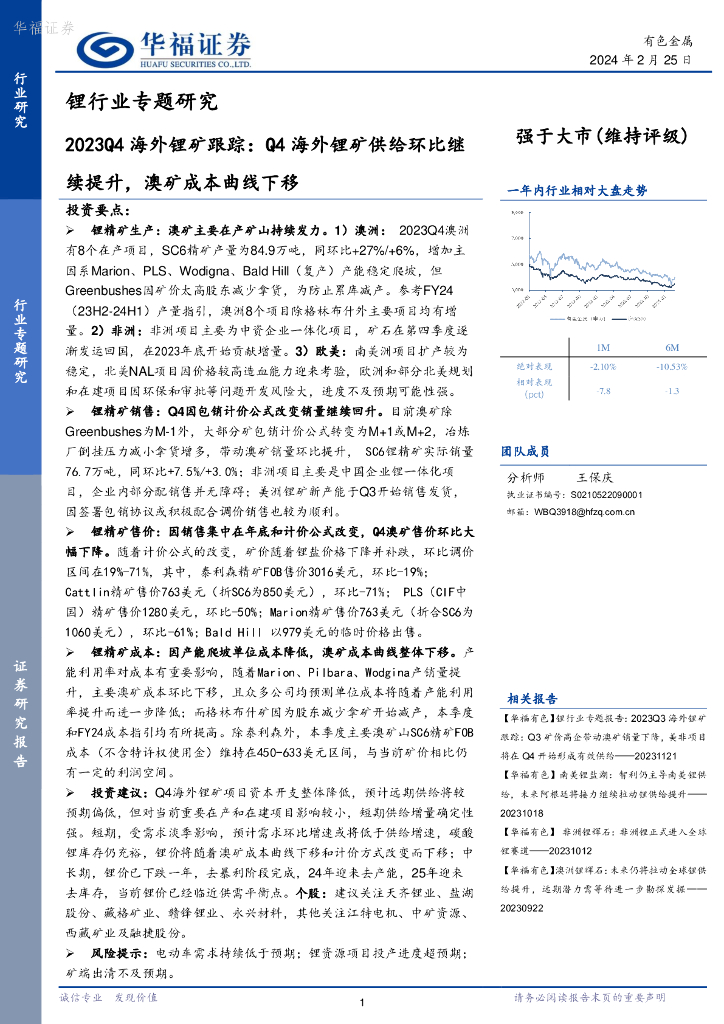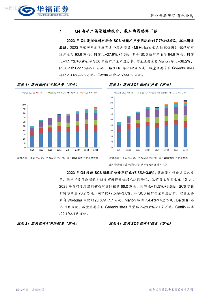 华福证券:锂行业专题研究:2023Q4海外锂矿跟踪:Q4海外锂矿供给环比继续提升,澳矿成本曲线下移.pdf