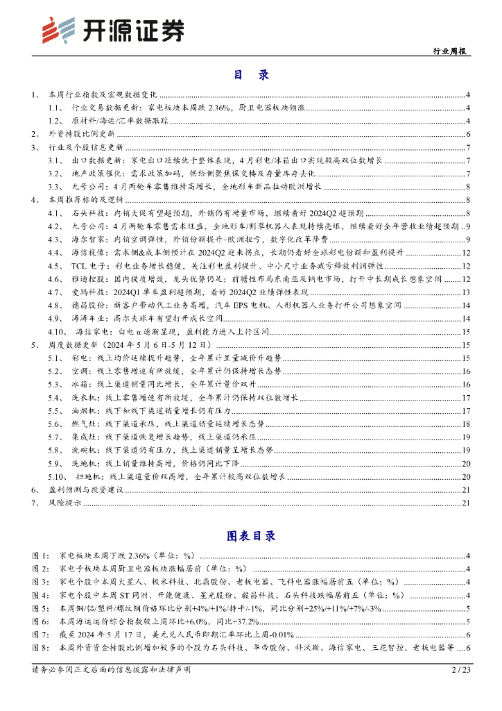 开源证券:家用电器行业周报:九号公司4月两轮车/全地形车/割草机器人零售表现亮眼,需求延后+结构改善下Q2两轮车拐点明确.pdf