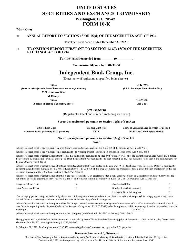 Independent Bank Group Inc(IBTX)2021财年年度报告(英文版).pdf