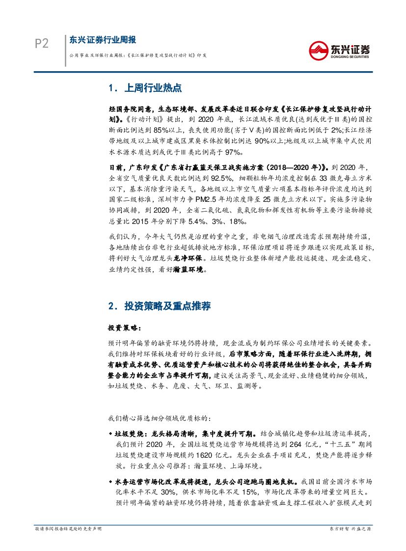 东兴证券:公用事业及环保行业周报:《长江保护修复攻坚战行动计划》印发.pdf