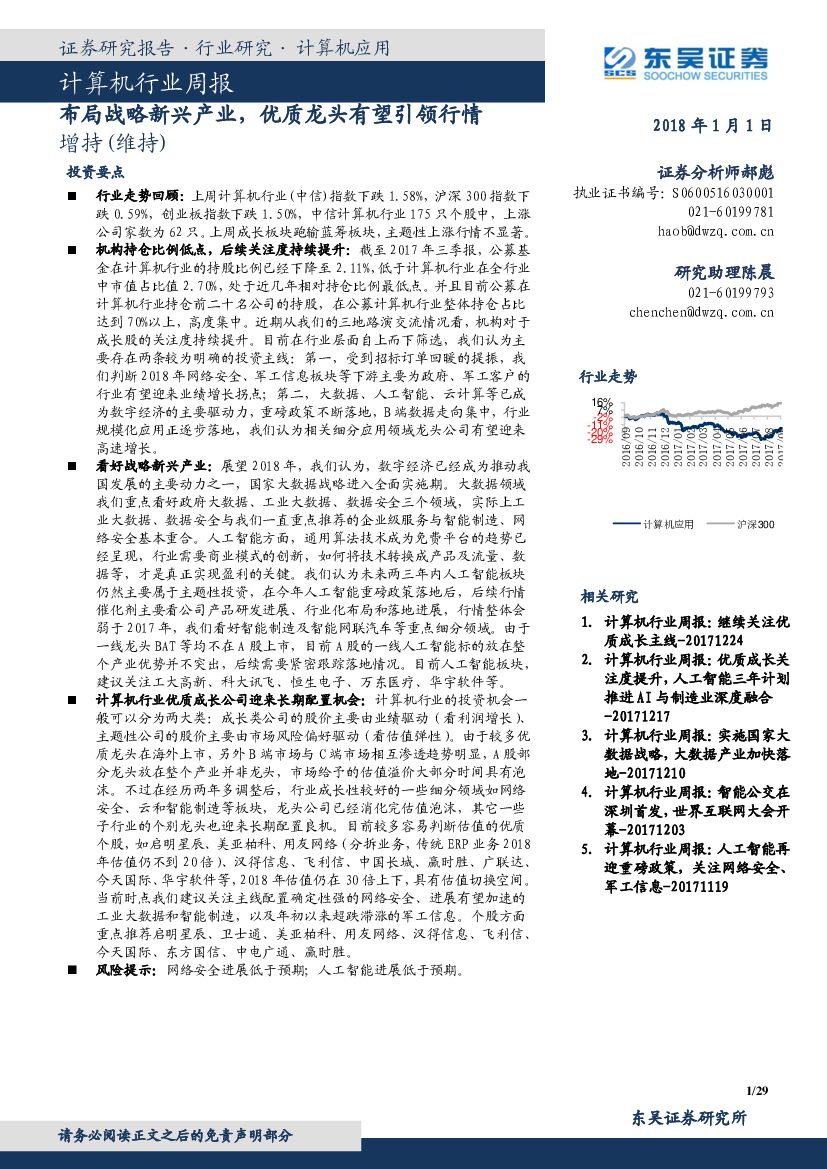 东吴证券:计算机行业周报:布局战略新兴产业,优质龙头有望引领行情.pdf