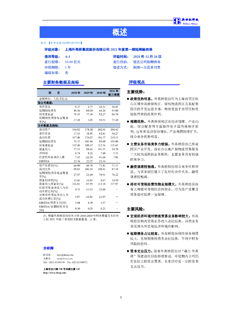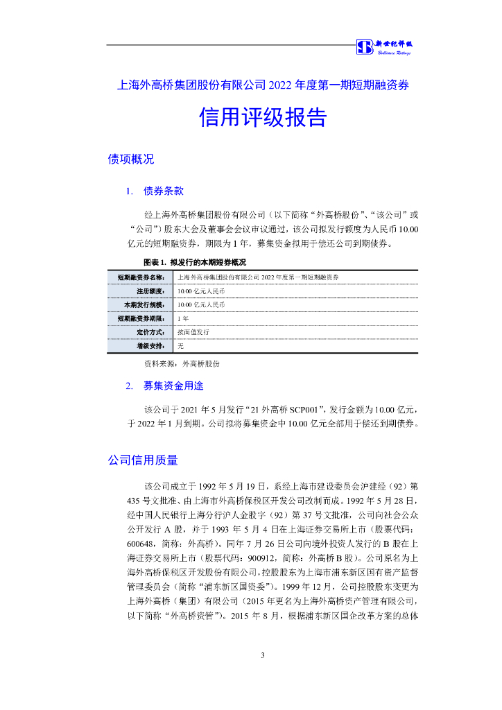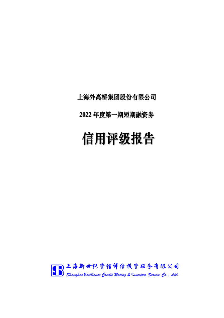 新世纪:上海外高桥集团股份有限公司2022年度第一期短期融资券债项信用评级报告.pdf
