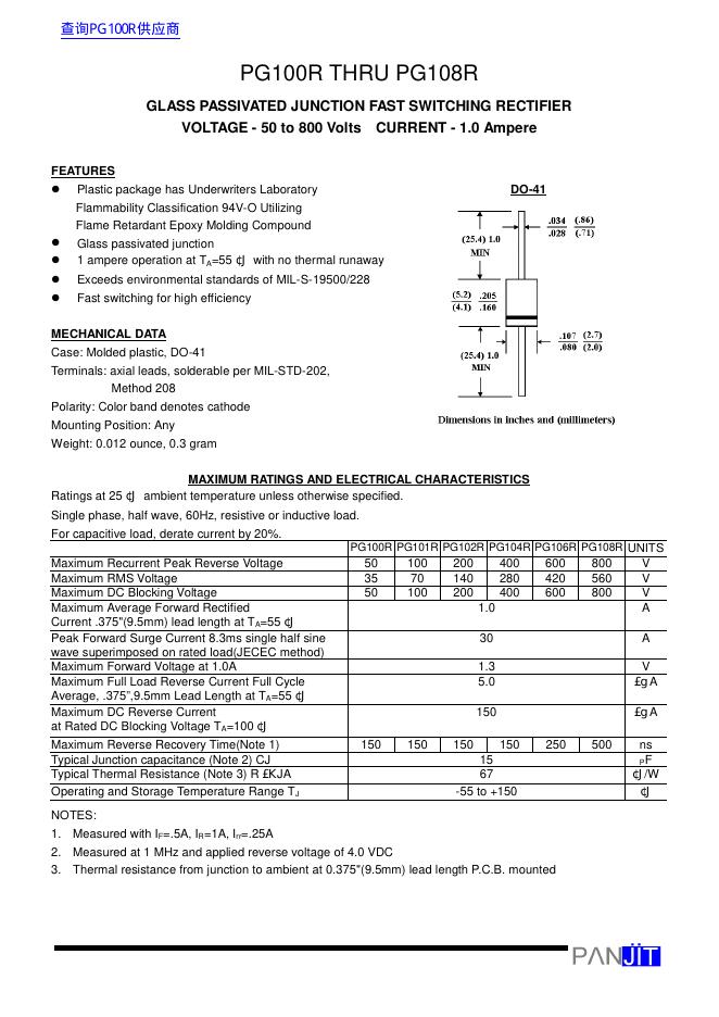 PANJIT PG100R THRU PG108R 数据手册.pdf
