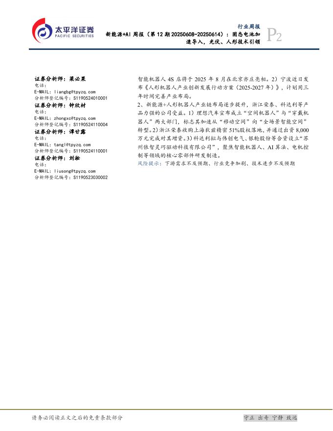 太平洋证券:新能源+AI行业周报(第12期20250608-20250614):固态电池加速导入,光伏、人形技术引领.pdf