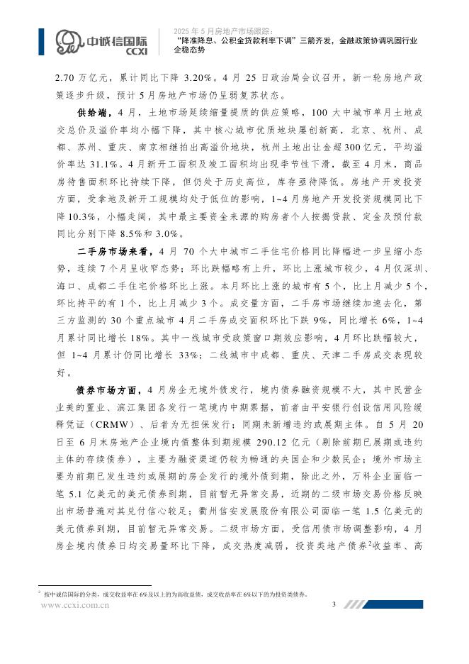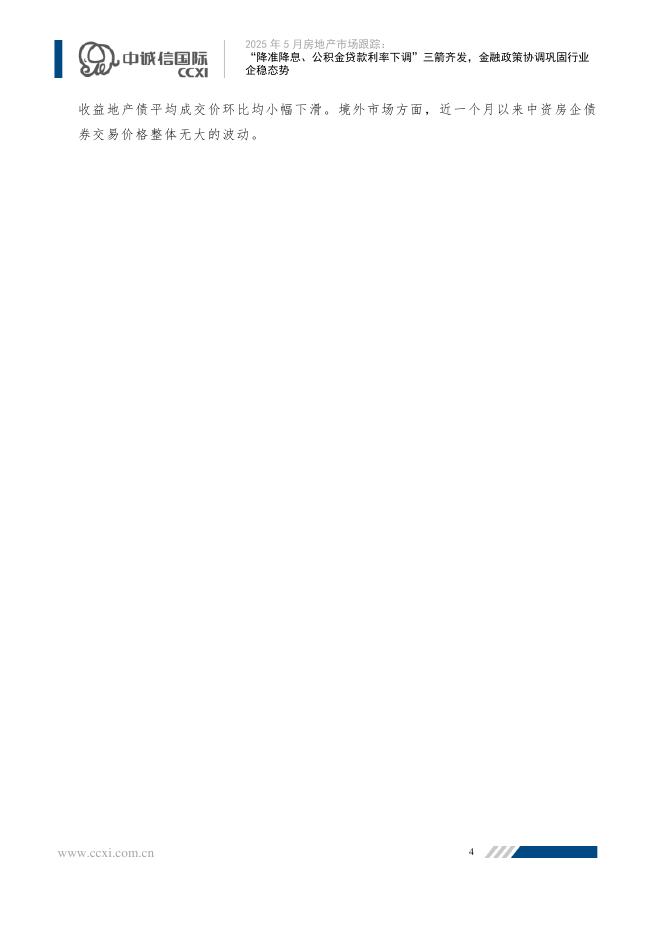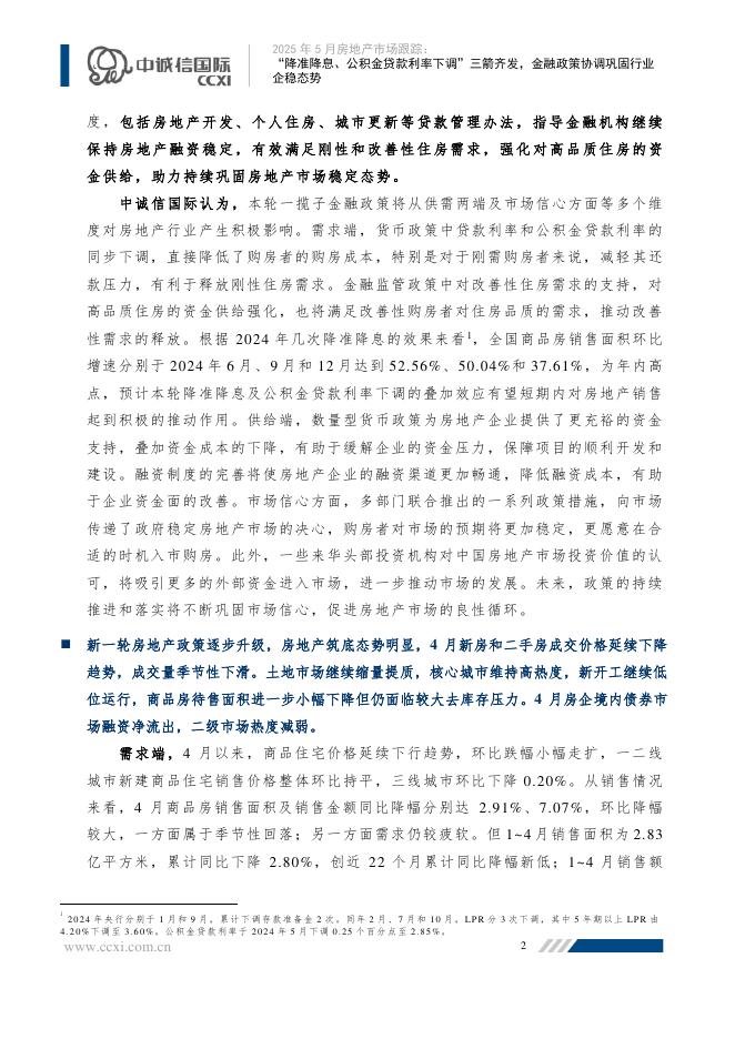 中诚信国际:2025年5月房地产市场跟踪:“降准降息、公积金贷款利率下调”三箭齐发,金融政策协调巩固行业企稳态势.pdf