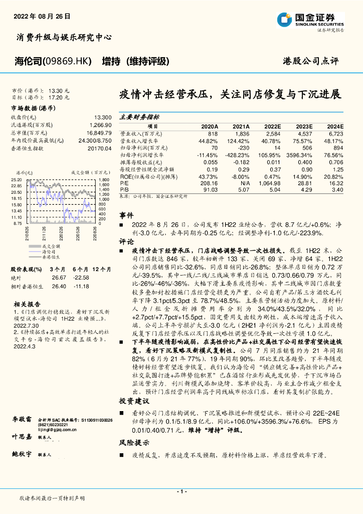 国金证券:海伦司(09869)港股公司研究报告-疫情冲击经营承压,关注同店修复与下沉进展.pdf