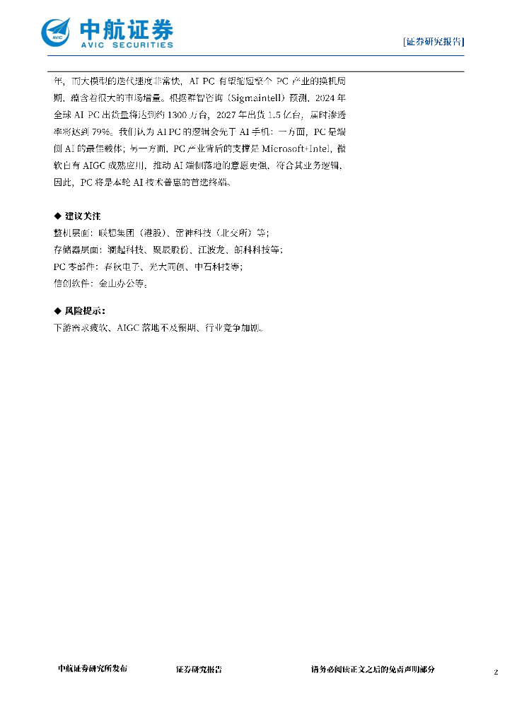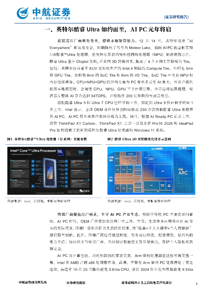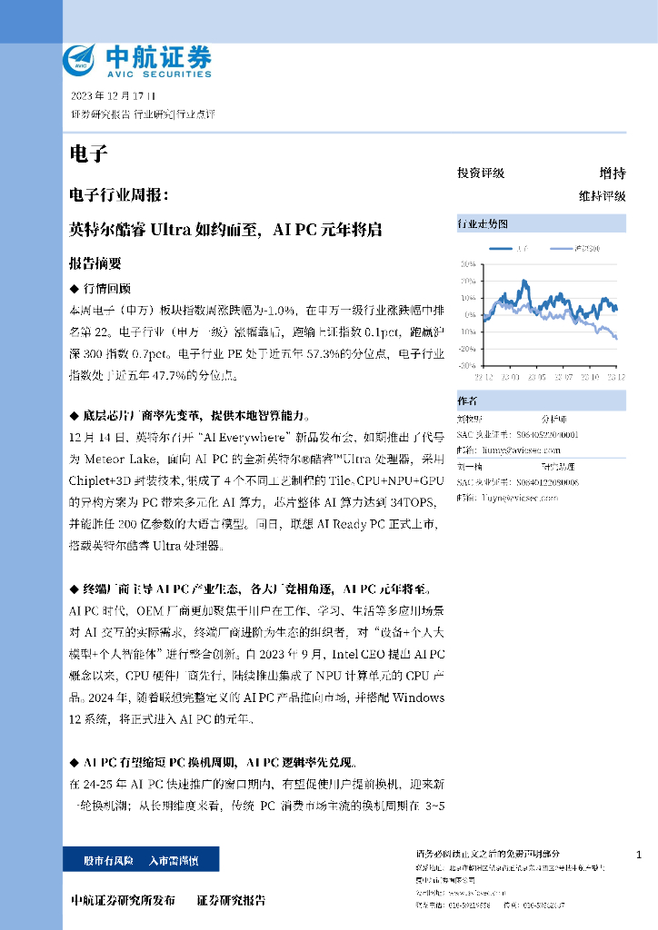 中航证券:电子行业周报:英特尔酷睿Ultra如约而至,AI PC元年将启.pdf