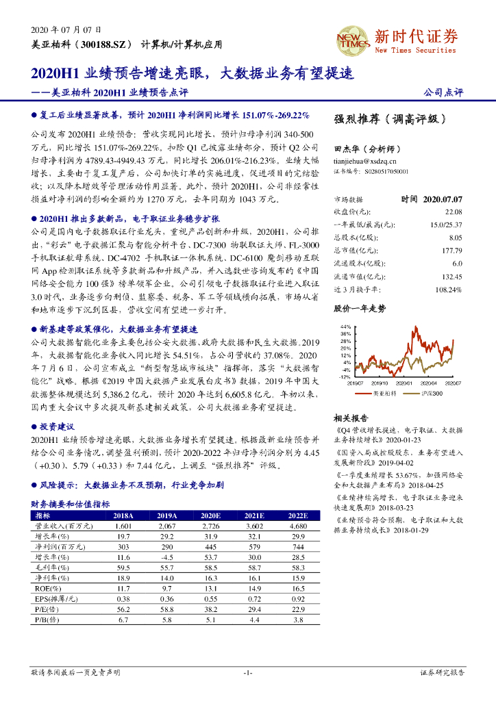 新时代证券:美亚柏科2020H1业绩预告点评:2020H1业绩预告增速亮眼,大数据业务有望提速.pdf