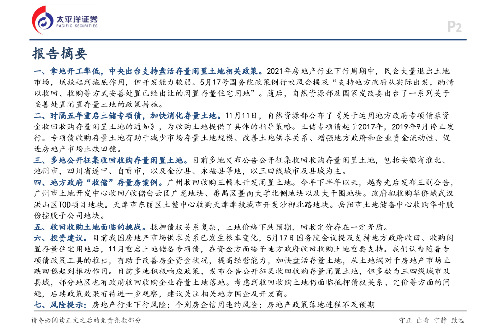 太平洋证券:房地产行业报告:重启土储专项债,存量用地加速去库存.pdf
