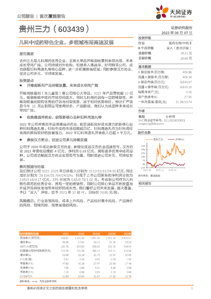 天风证券:贵州三力(603439)-儿科中成药特色企业,多领域布局高速发展.pdf