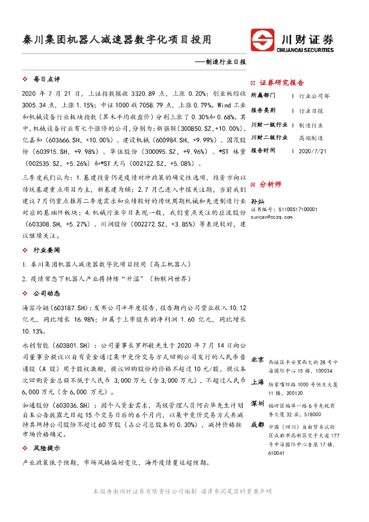 川财证券:制造行业日报:秦川集团机器人减速器数字化项目投用.pdf