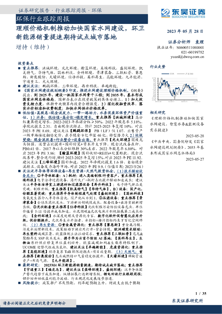 东吴证券:环保行业跟踪周报:理顺价格机制推动加快国家水网建设,环卫新能源销量提速期待试点城市落地.pdf