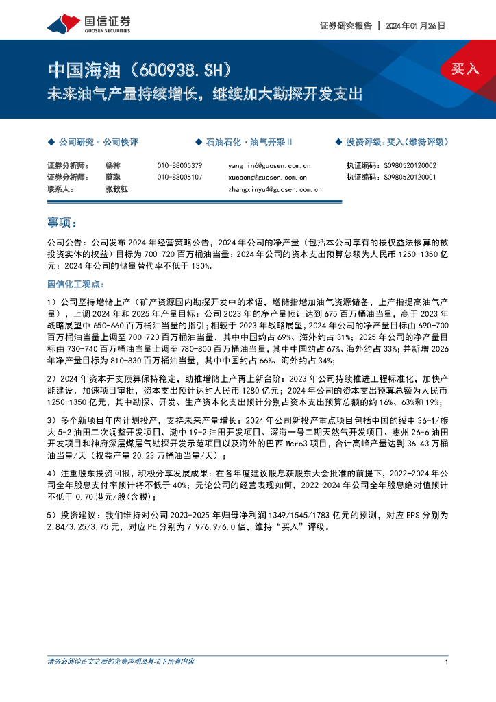 国信证券:中国海油(600938)-未来油气产量持续增长,继续加大勘探开发支出.pdf