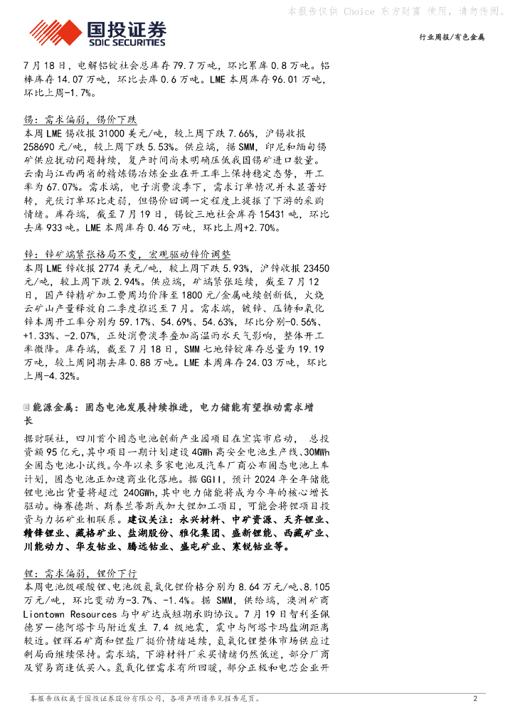 国投证券:有色金属行业周报:海外衰退预期施压金属价格,持续看好黄金表现.pdf