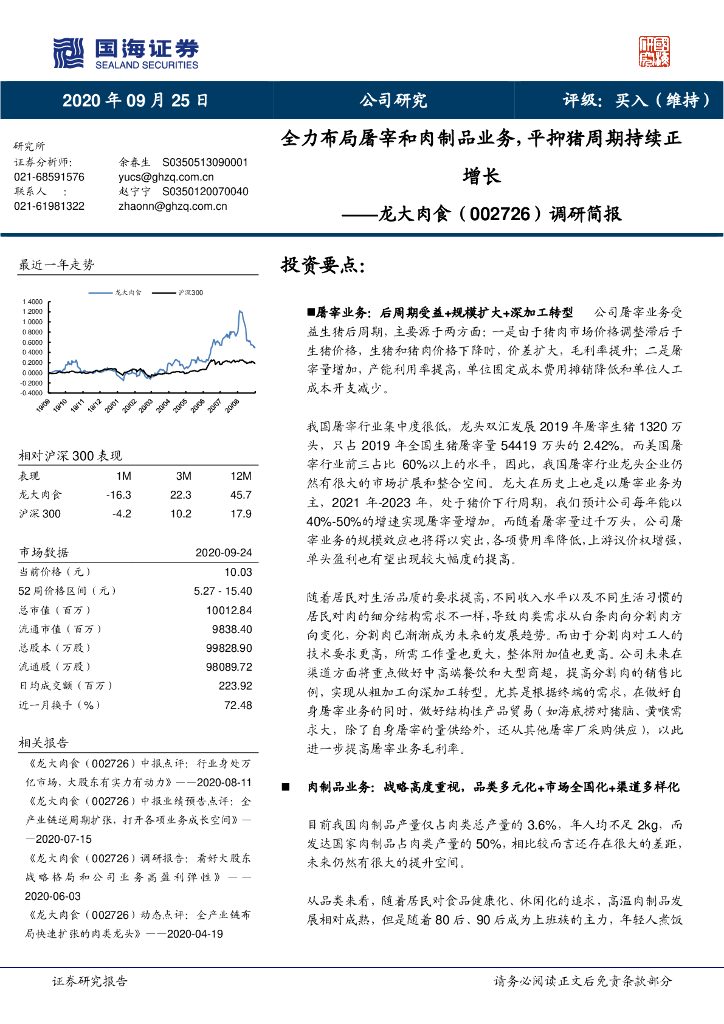 国海证券:龙大肉食(002726)-调研简报:全力布局屠宰和肉制品业务,平抑猪周期持续正增长.pdf