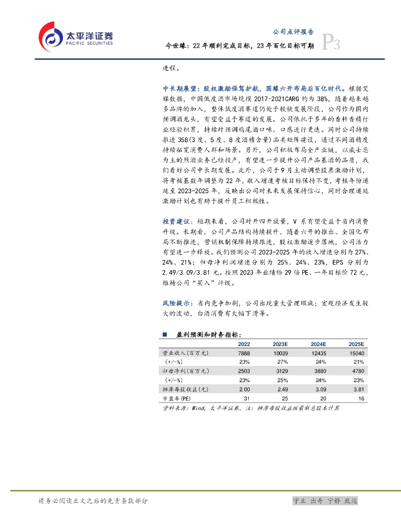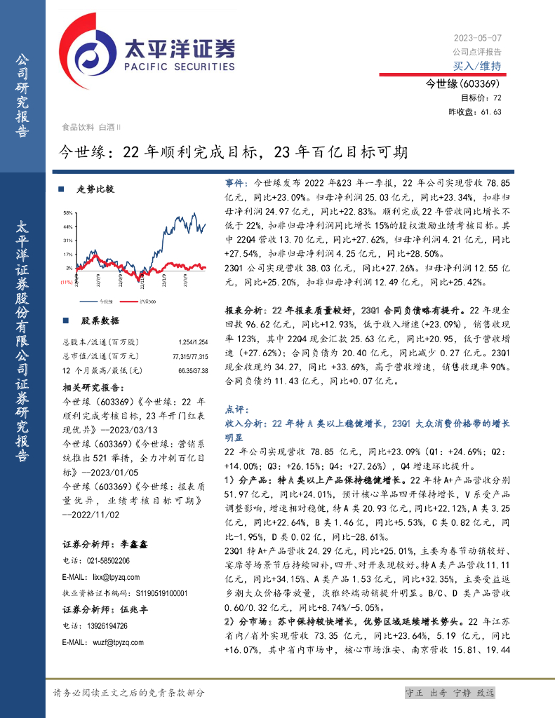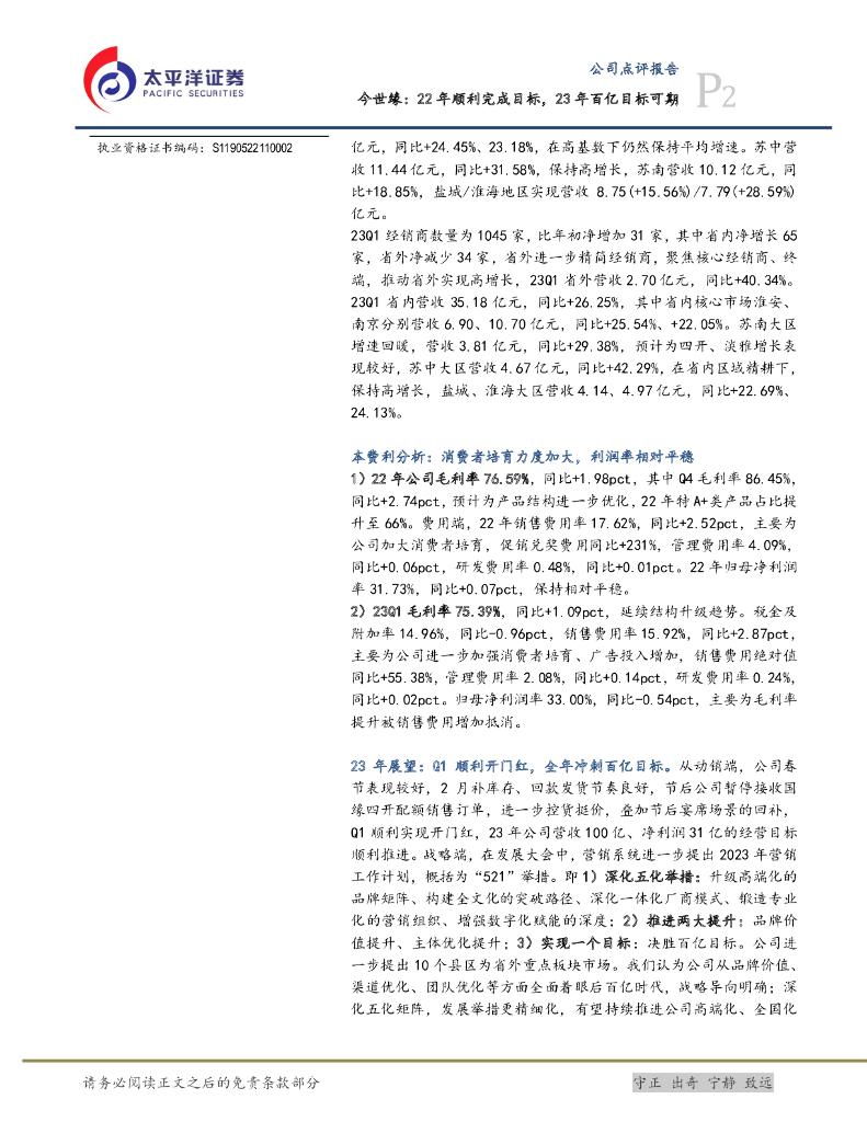 太平洋证券:今世缘:22年顺利完成目标,23年百亿目标可期.pdf