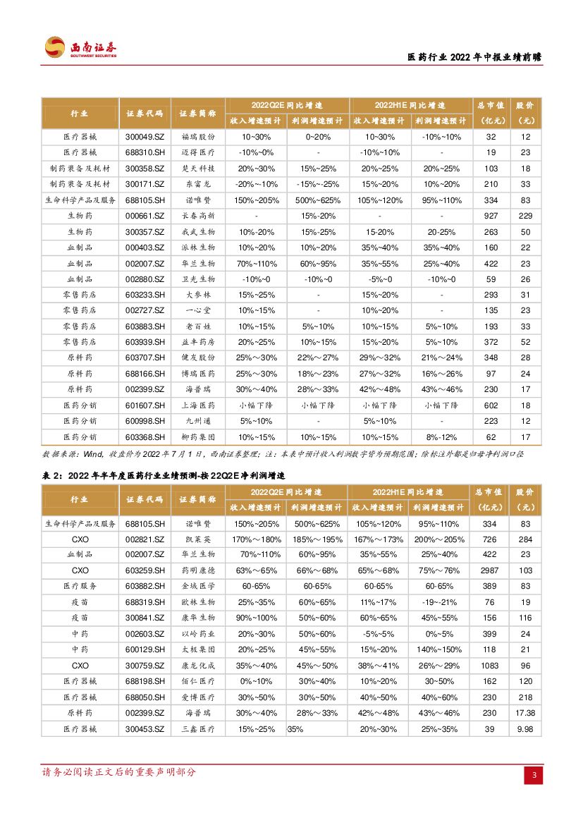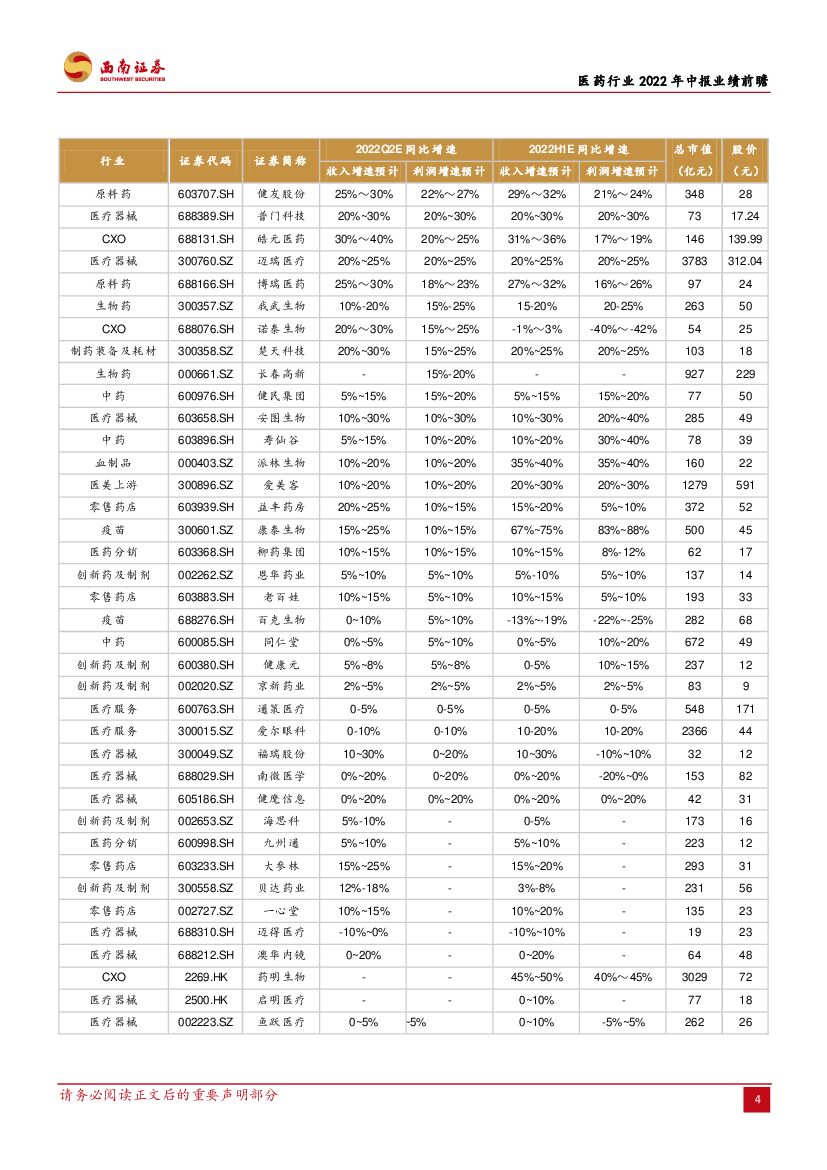 西南证券:医药行业2022年中报业绩前瞻:中药消费品、CXO、疫苗、创新器械有望持续高增长.pdf