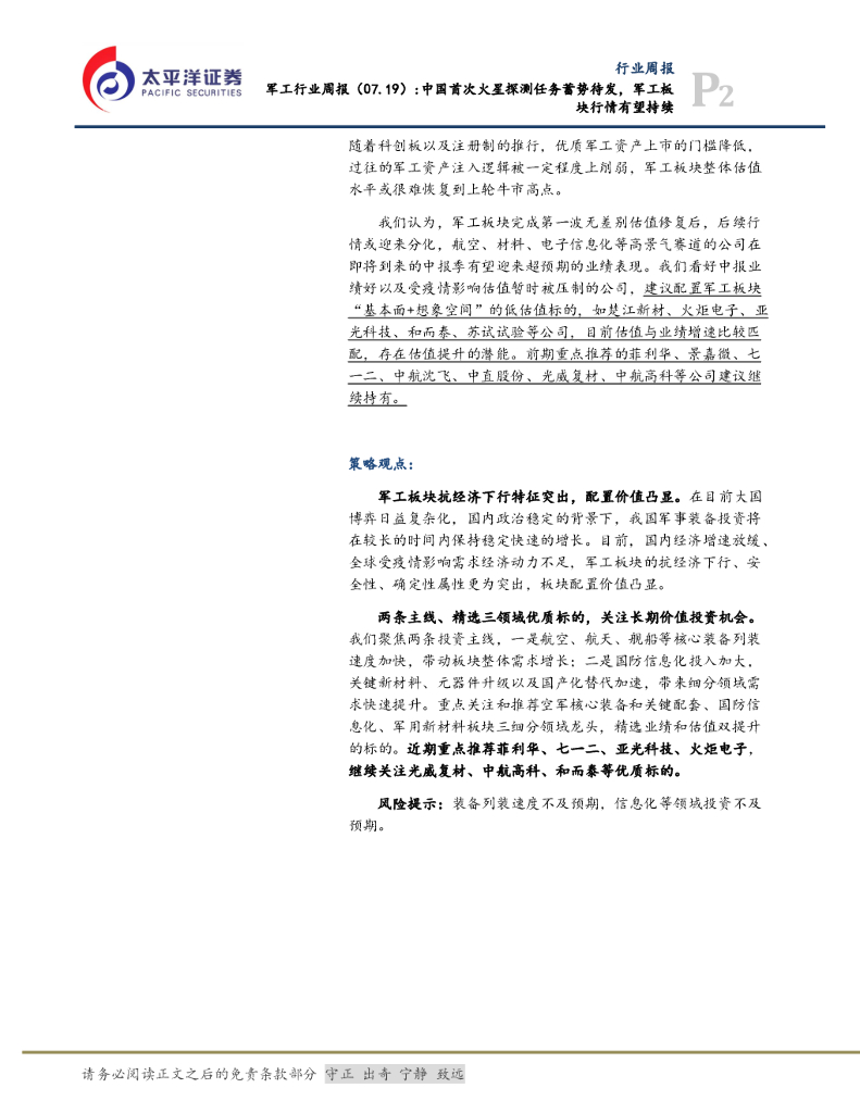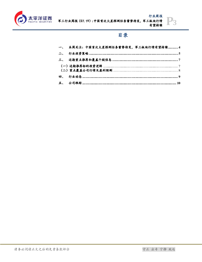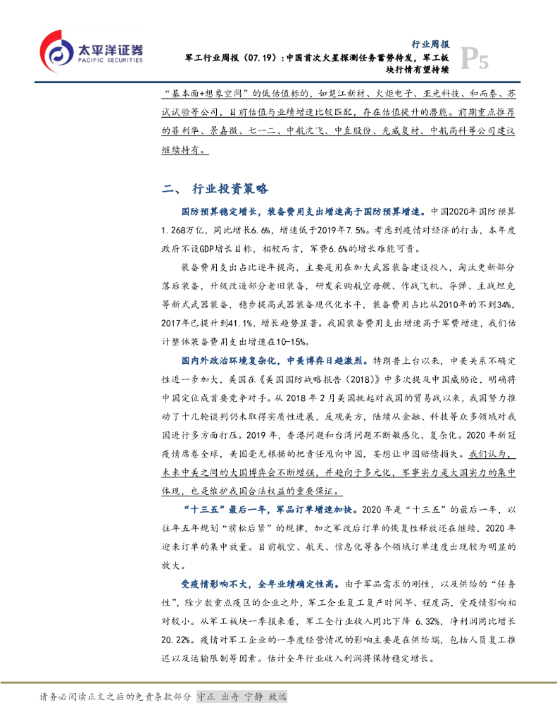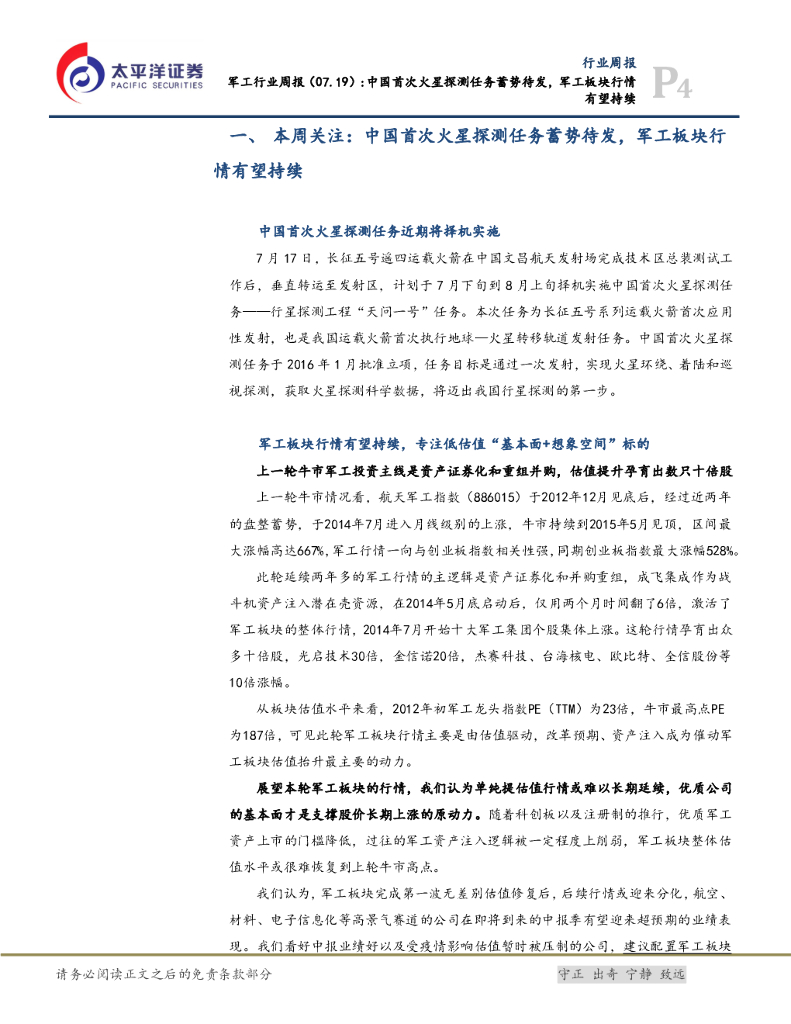 太平洋证券:军工行业周报:中国首次火星探测任务蓄势待发,军工板块行情有望持续.pdf