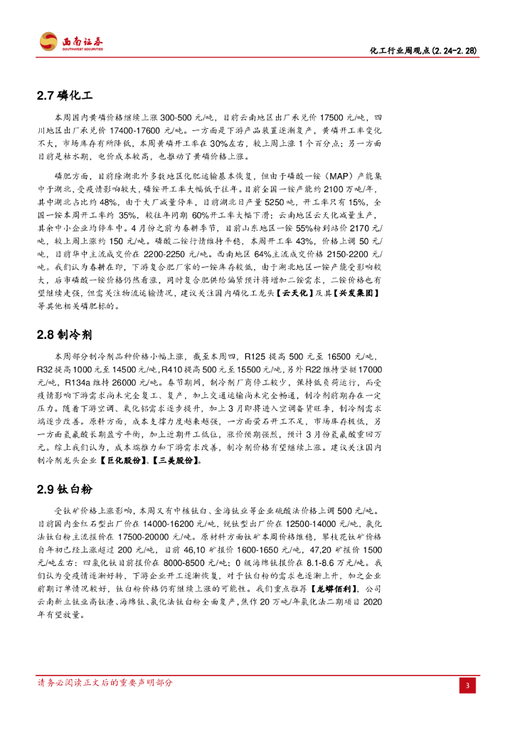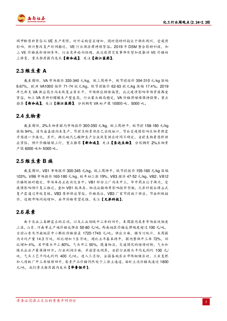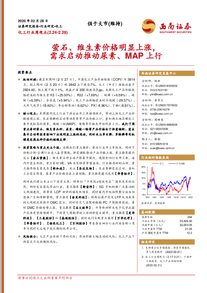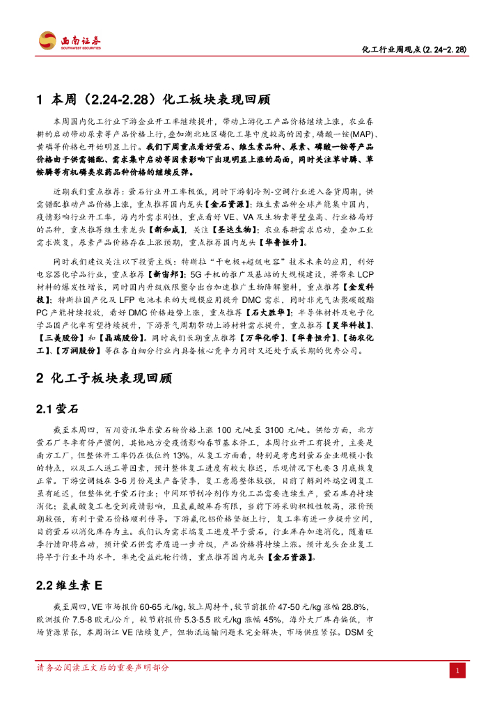 西南证券:化工行业周观点:萤石、维生素价格明显上涨,需求启动推动尿素、MAP上行.pdf
