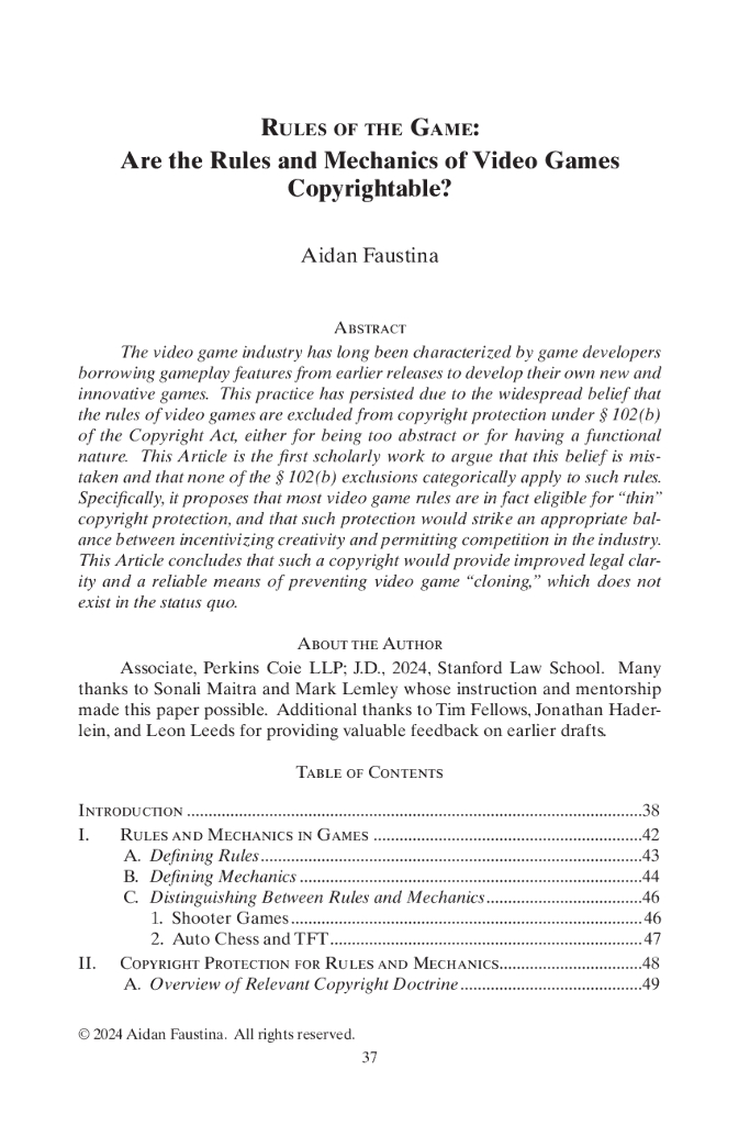 Perkins Coie:游戏规则:视频游戏的规则和机制是否可版权?(英文版).pdf