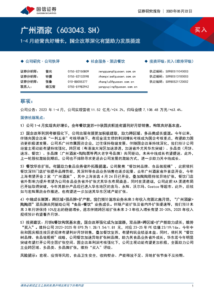 国信证券:广州酒家(603043)-1-4月经营良好增长,国企改革深化有望助力发展提速.pdf