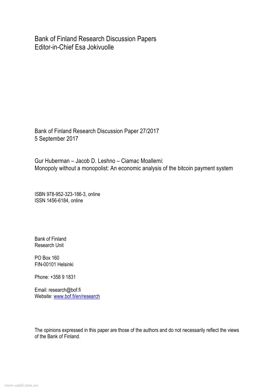 芬兰央行研究报告:比特币的经济体系是革命性(英文版).pdf