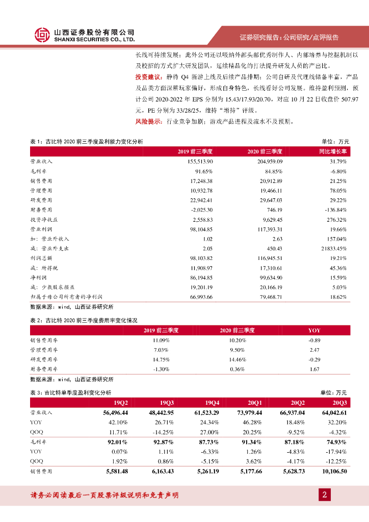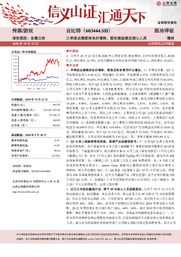 山西证券:吉比特(603444)-三季度业绩维持良好增势,股权激励锁定核心人员.pdf