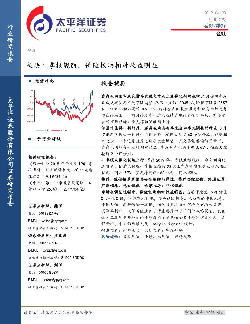 太平洋证券:金融行业周报:板块1季报靓丽,保险板块相对收益明显.pdf