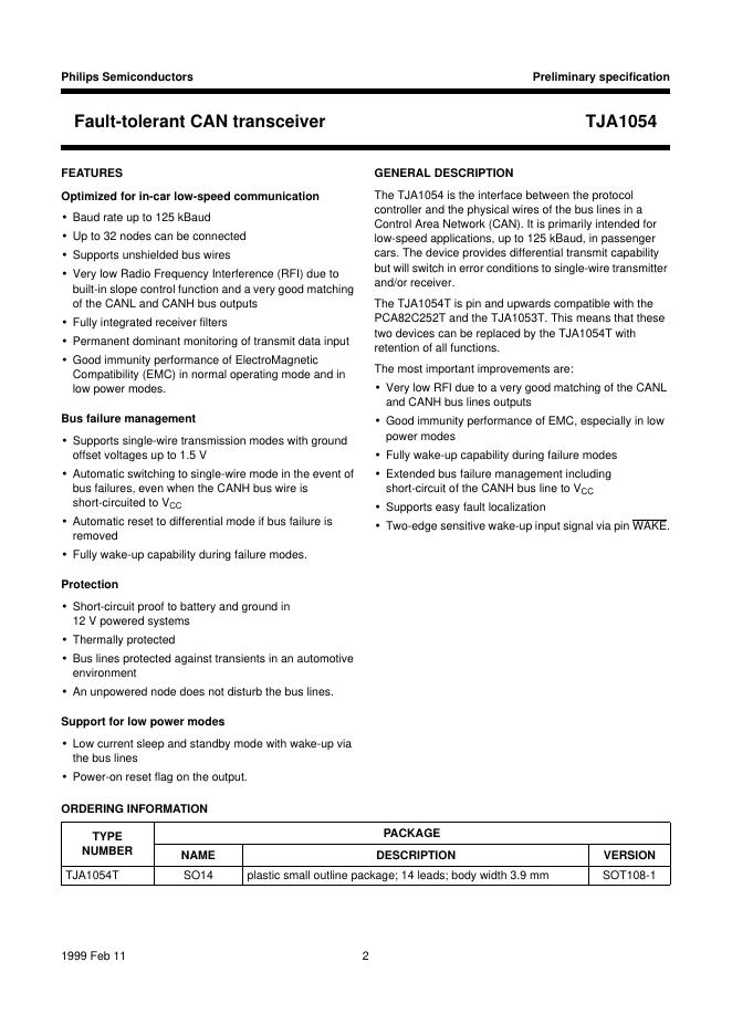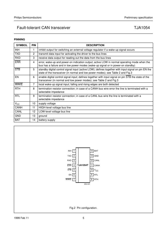 philips TJA1054 Fault-tolerant CAN transceiver 数据手册.pdf